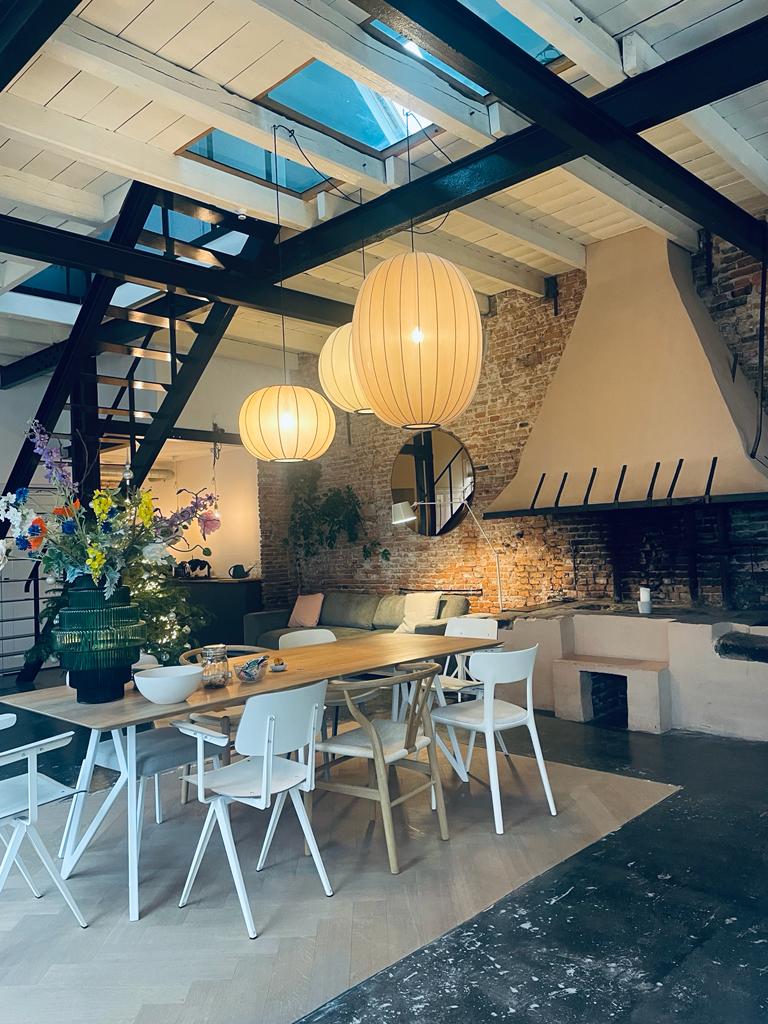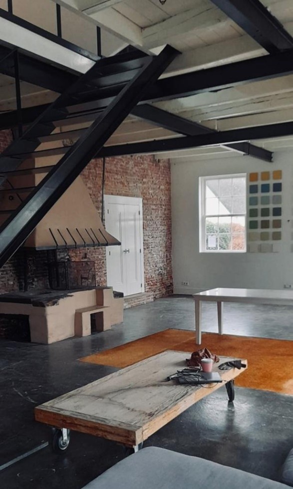 Het pand werkt mee: een oude haard, een brick wall, stalen balken en een stalen trap zorgen voor een prachtige basis.